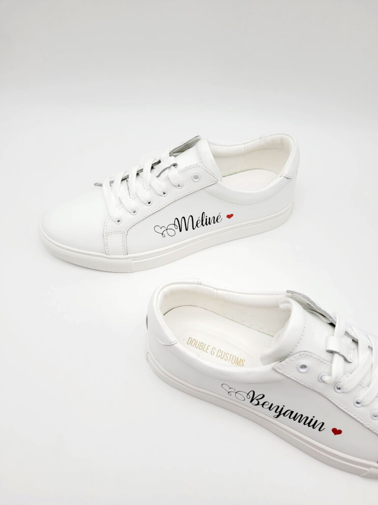 Les Wedding Sneakers sont des petites baskets blanches en cuir qui vous offrent une multitude d’options de personnalisation. Qu’allez-vous choisir pour vos Wedding sneakers pour une personnalisation unique ?